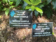 Memorial Plaque on a metal stand (family shrubs) Southport Crematorium and Thornton Garden of Rest only