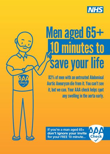 Men aged 65 or older are being encouraged to go for a free, 10-minute abdominal aortic aneurysm (AAA) screening.