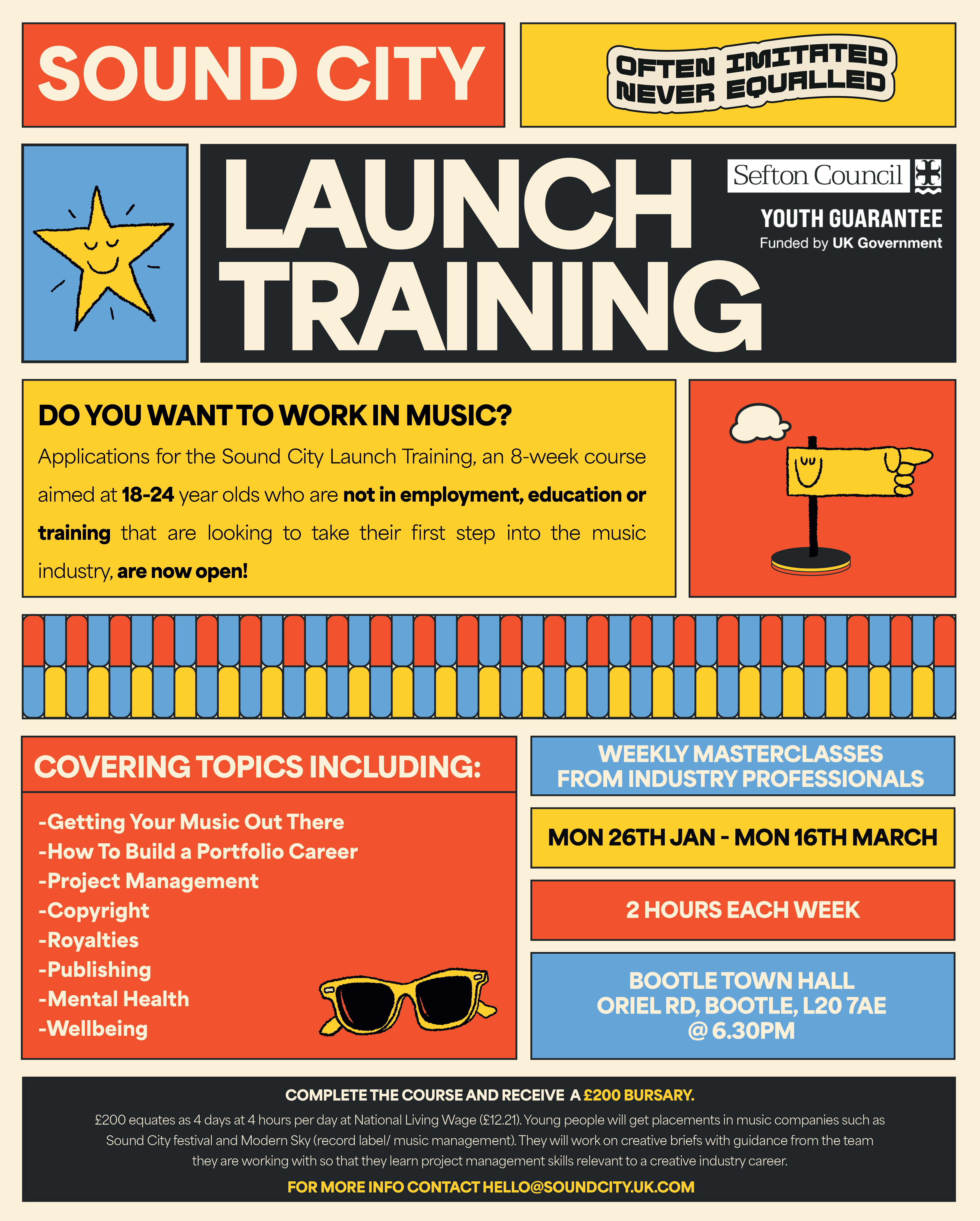 Participants who complete the course will receive £200. They will also have the chance of work experience at creative local music, entertainment and events companies such as Liverpool Sound City and Modern Sky UK.