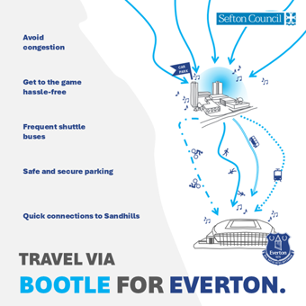 If you live within Sefton, try to use local railway connections and existing bus services to avoid congestion.
